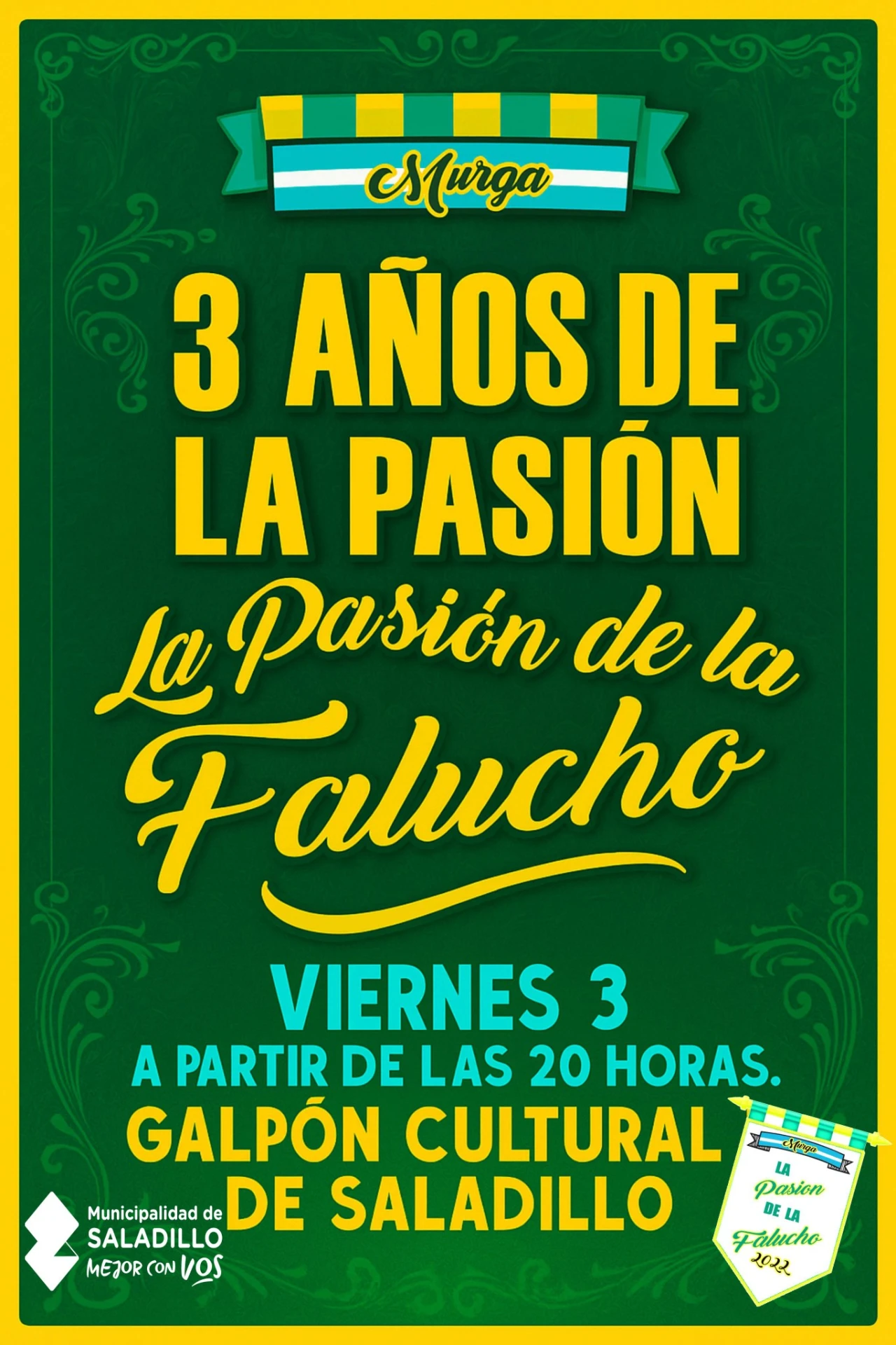 Este viernes 3 de octubre, a partir de las 20 horas, el Galpón Cultural de Saladillo será escenario de una gran celebración: La Pasión de La Falucho, la reconocida murga local, festeja su tercer aniversario con una noche cargada de música, color y alegría popular.